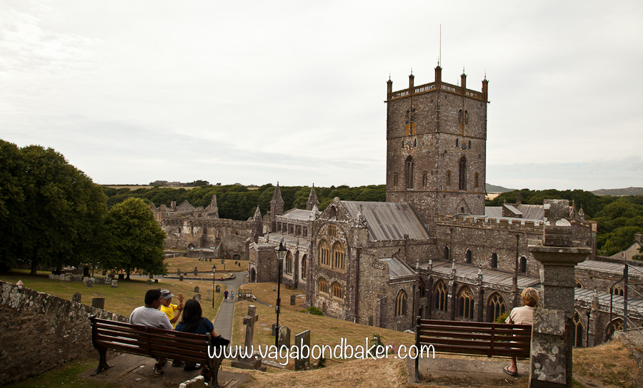 St Davids is the smallest city in Britain, named after the patron saint of Wales who founded a monastery there in the 6th Century. It was said that two pilgrimages to St Davids was equal to one to Rome, such was the religious importance to the site. The current city {it’s really just a tiny town} which stands on the St Davids peninsula, has a lovely village-y feel. In the centre of town is a medieval stone cross from where you can walk down the hill to the Cathedral, set behind a high wall. We walked into town from the campsite, a short ten minute stroll and reached the cathedral in the late afternoon. Inside the cathedral is both grand and quirky, the roof is beautifully carved. Across from the cathedral, over a small river are the ruins of the 14th Century Bishop’s Palace, with interesting architectural details.