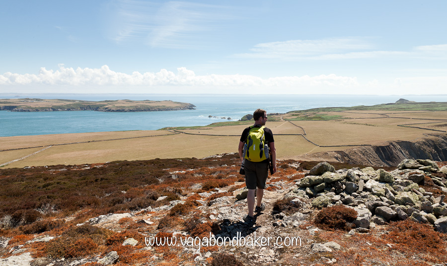 On a particularly sunny day during our time on the St Davids peninsular we took a boat from the St Justinians RNLI Lifeboat station to Ramsey Island, after a fun ride on the local Celtic Coaster bus from St Davids. The island is just a kilometre off the mainland and is owned and managed by the RSPB. An important grey seal breeding site and abundant with birds and other wildlife. We took the 12pm boat across and the four hours we had until the return boat was more than enough to walk around the island on the marked trails. The views from around the island were just superb, it had rained heavily overnight clearing the atmosphere, leaving us with clear vistas. We saw some great birds, the highlights being a number of chough flocks and a few ravens {I love corvids} as well as one gannet, a couple of peregrine falcons and some stonechats. There were many butterflies too. We took a small picnic and found a beautiful spot to take a break, my sticky and sweet energy treats were perfect to keep us on the go.