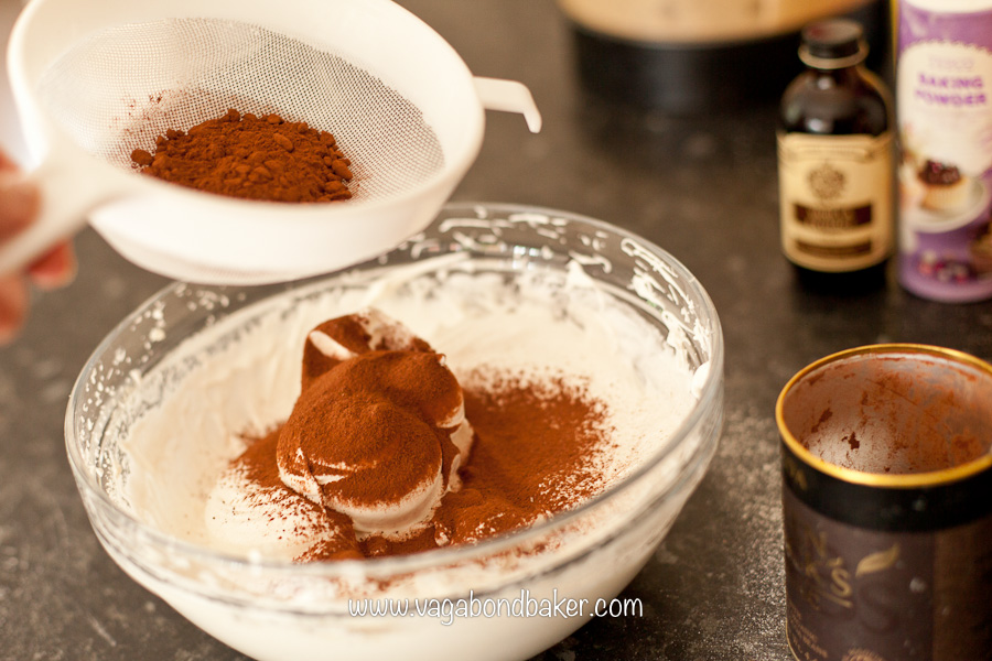 Sift in the cocoa powder and fold into the meringue.