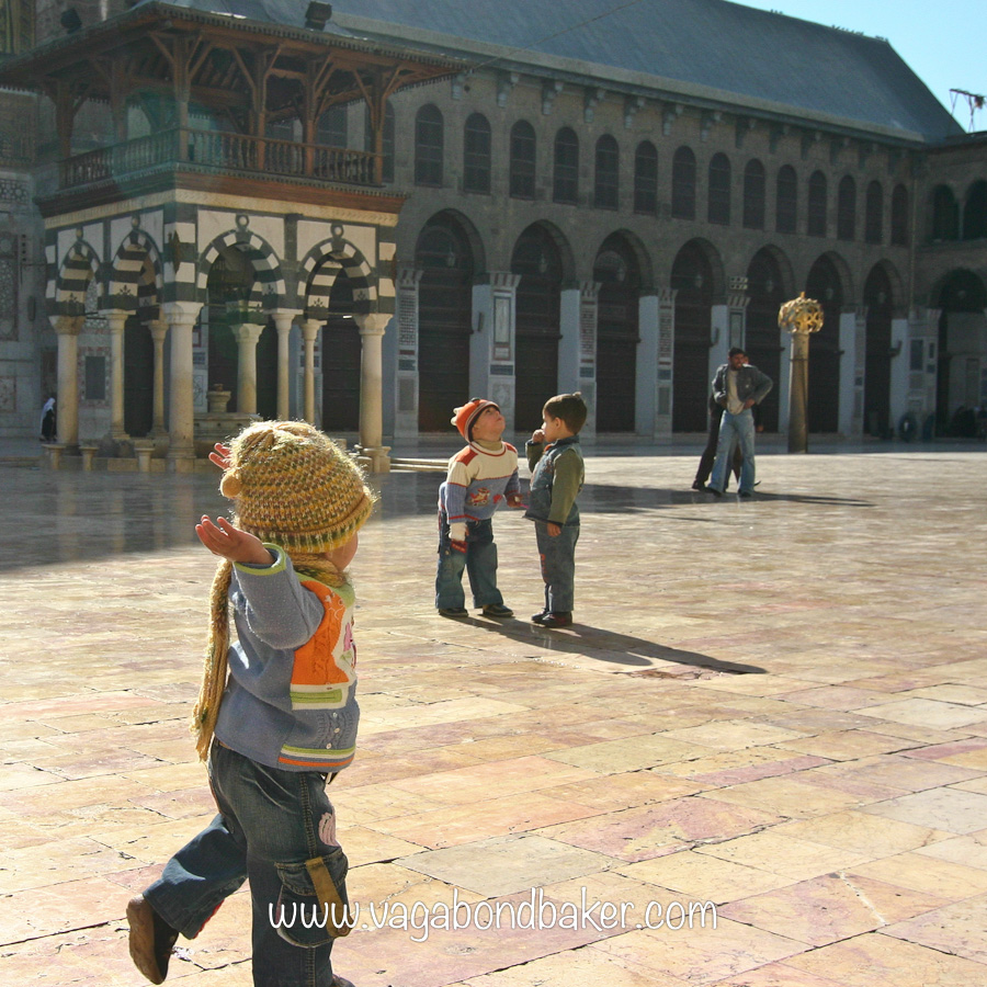 The souk ends under the Roman remains of the Temple of Jupiter, bringing us out into the middle of the old city and the entrance to the magnificent Umayyad Mosque.