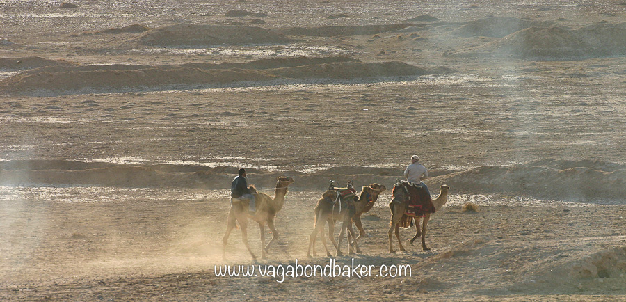 We plodded slowly along, stopping once for a break. One of the guides showed us how fast the camels really could go and gave us an example of how he raced them.