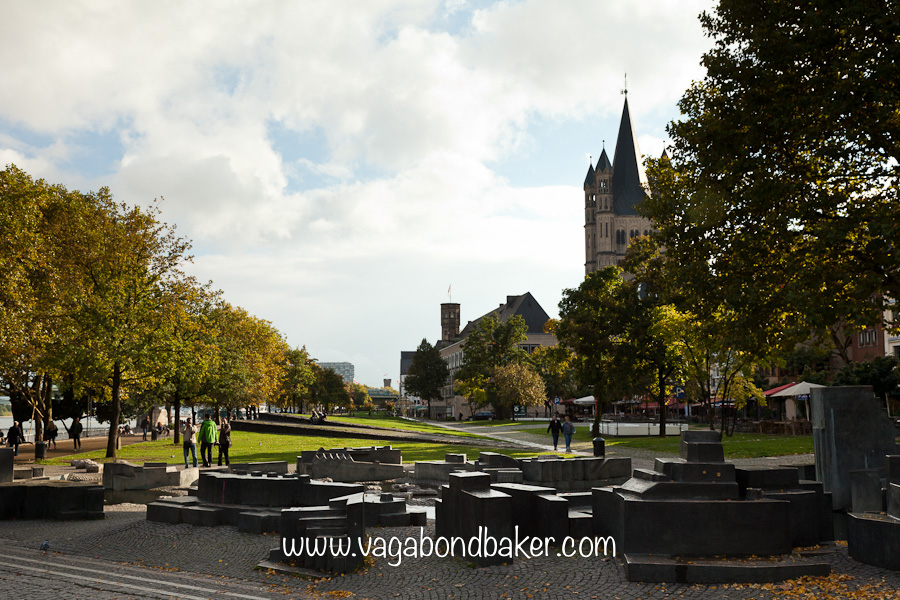 There were some magical luggage lockers at Cologne station, self-service: you put your bags into the machine, coins into the slot then a shutter closes and the luggage disappears into the ground in a secure box. We were very impressed! Free of our bags, we stepped out into the sunshine and the huge, awe-inspiring Cologne Cathedral. This gothic church towers over everything and was one of the few buildings in the city to survive WWII.