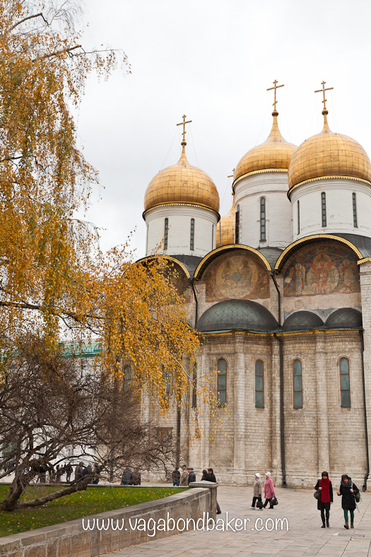 The Kremlin is entered through the imposing Trinity Gate Tower, you pass the Arsenal with its line of cannons before arriving into the central square around which stand the Kremlin’s four main cathedrals.
