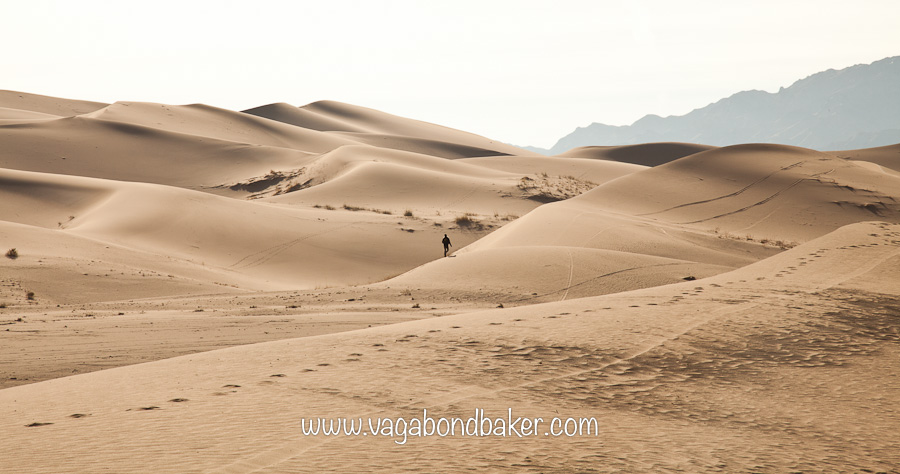 The camels hadn’t made it to the dunes before sunset so the following morning Bata drove us right up to them, expertly handling the little van in the deep sand.