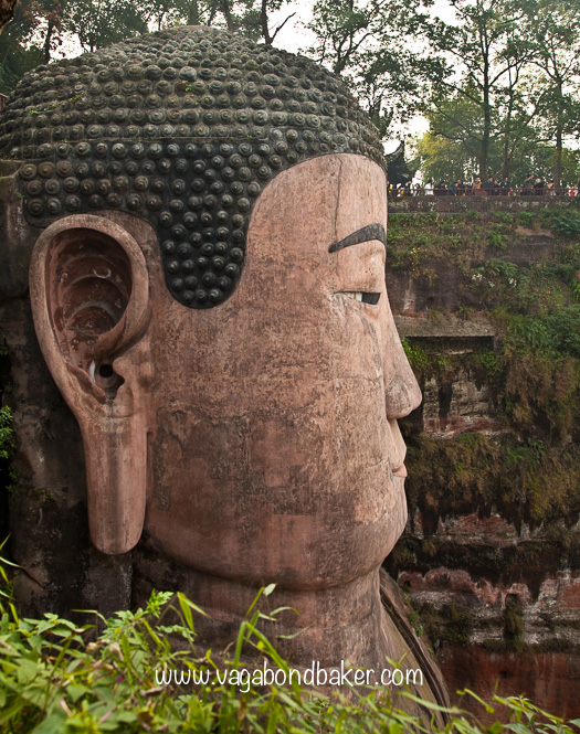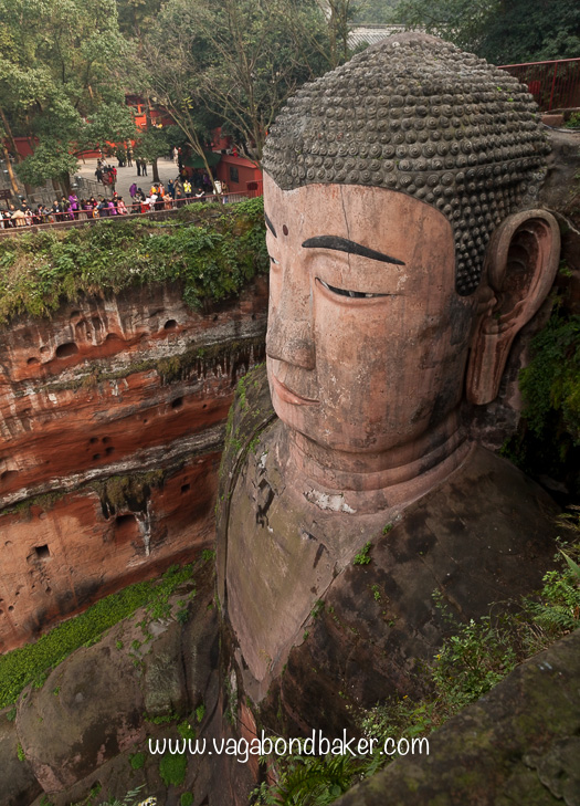 Yet not all of the Leshan Buddha is stone, his ears were fashioned from wood, painted then attached and his 1021 hair coils were each cut from separate stone and fixed individually onto his head.