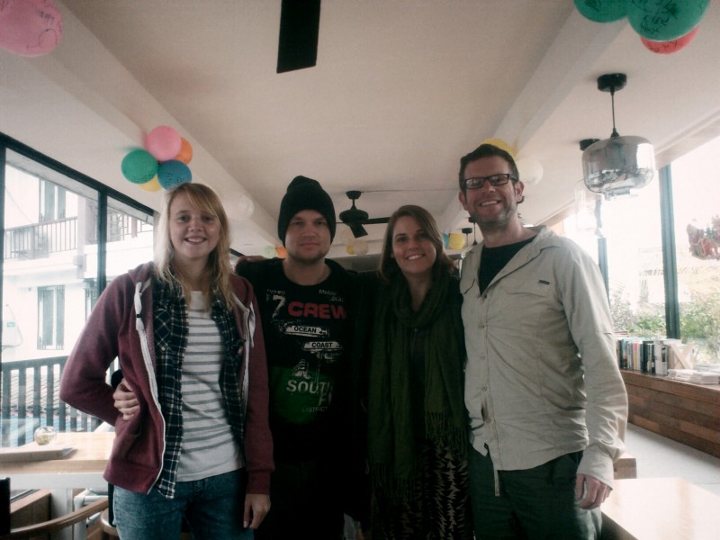 Later that afternoon we met up with Sophie and Severi, who we’d travelled with in Mongolia, Xian and Chengdu, in our hostel, the rather lovely Greenforest Hostel Yangshuo {that’s their wonderful balcony on the top pic}, and reunited our little travel family just in time for Christmas…..