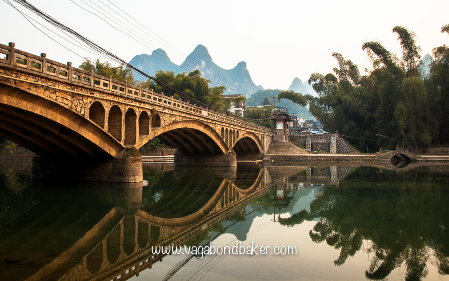 Xingping is hidden among the karst hills on a bend of the serene Li River that flows south from Guilin to Yangshuo. A small, pretty town of curious alleyways and a spectacular backdrop, a 45 minute bus ride from Yangshuo. We checked in to This Old Place International Youth Hostel, into a six bed dorm. The hostel was right near the river and had a lovely terrace overlooking the karsts, perfect for a late afternoon beer to contemplate the view.