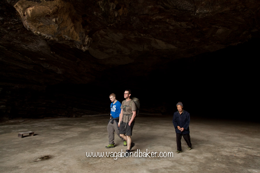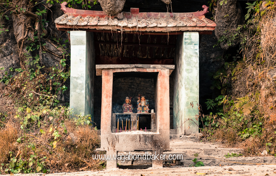 Tucked under rocky overhang the Tengjiao Nunnery is a Ming Dynasty temple on what would have been the river’s edge, but the river here was virtually dry. We were encouraged into the temple by an extremely enthusiastic man, all grins and extraordinary waving arms. He ushered us through the temple to the cave at the back. Behind the temple buildings there is a spacious cave, with an altar of figures, our excitable guide used his torch to illuminate details in the cave roof, it was quite an unexpected experience, we tipped him a few Yuan for his troubles.
