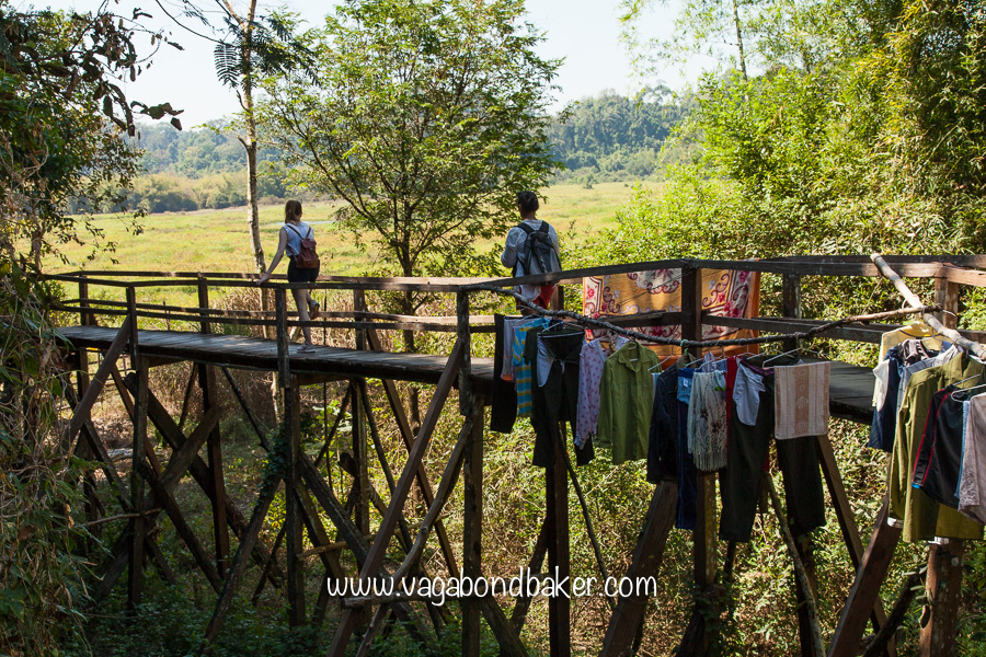 From the road we left our bikes and hiked for half an hour through the jungle that was alive with many fluttering butterflies to reach the lake lookout from where we saw the crocodiles. They are Siamese Crocodiles, small freshwater crocodile native to South East Asia, that are critically endangered in the wild, making it rather marvellous to see them here in this beautiful setting.