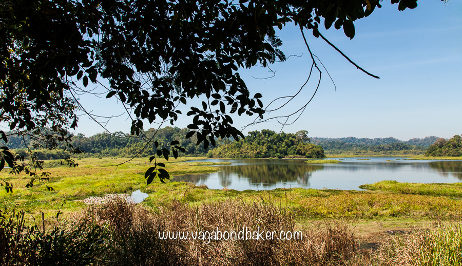 From the road we left our bikes and hiked for half an hour through the jungle that was alive with many fluttering butterflies to reach the lake lookout from where we saw the crocodiles. They are Siamese Crocodiles, small freshwater crocodile native to South East Asia, that are critically endangered in the wild, making it rather marvellous to see them here in this beautiful setting.