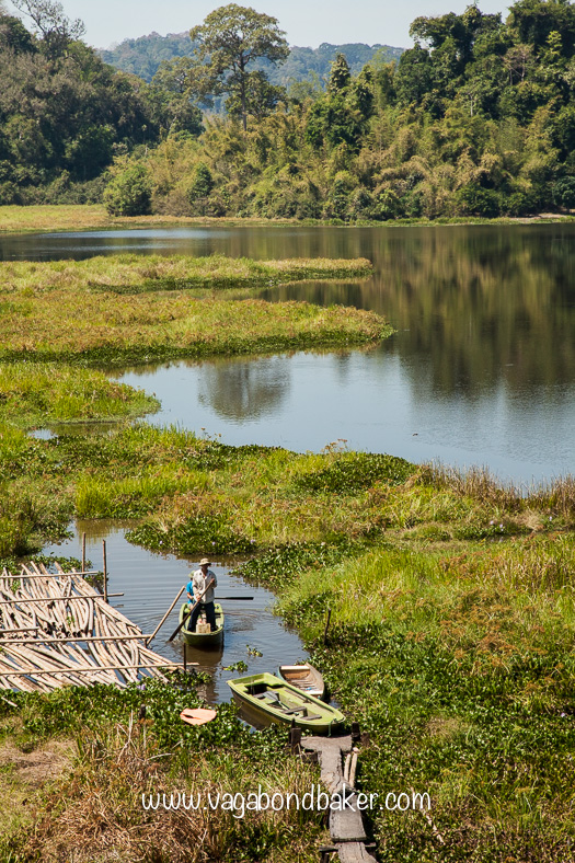 Sure enough however, it was a crocodile. Chris and a couple of others rushed down to the lake-side to photograph it. I stayed put with the rest of the group up on the viewing platform and watched it from a super-safe distance through my binoculars. The fishermen had dropped some dead fish into the pool, to attract the crocodiles while they headed out into the big lake with their net.