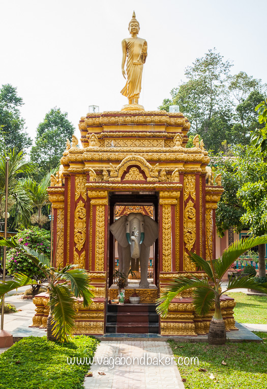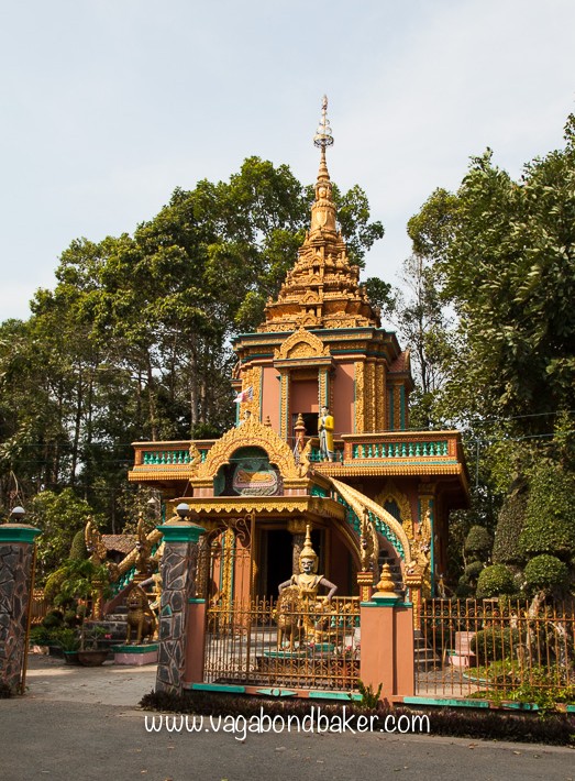 Chùa Chòm Ca, another Khmer temple further on is set in beautiful grounds with ornate fountains, pristine lawns and colourful gateways. They were wonderful places to wander around and I’d have loved to have had time to explore a few more but our time in Tra Vinh was short.
