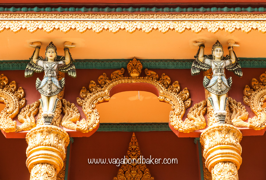 The architectural style and detail of the temples is unlike any of the other Buddhist temples in Vietnam, it is highly intricate, very colourful and rich with Khmer imagery. Inside the temples are vibrant with murals and designs.