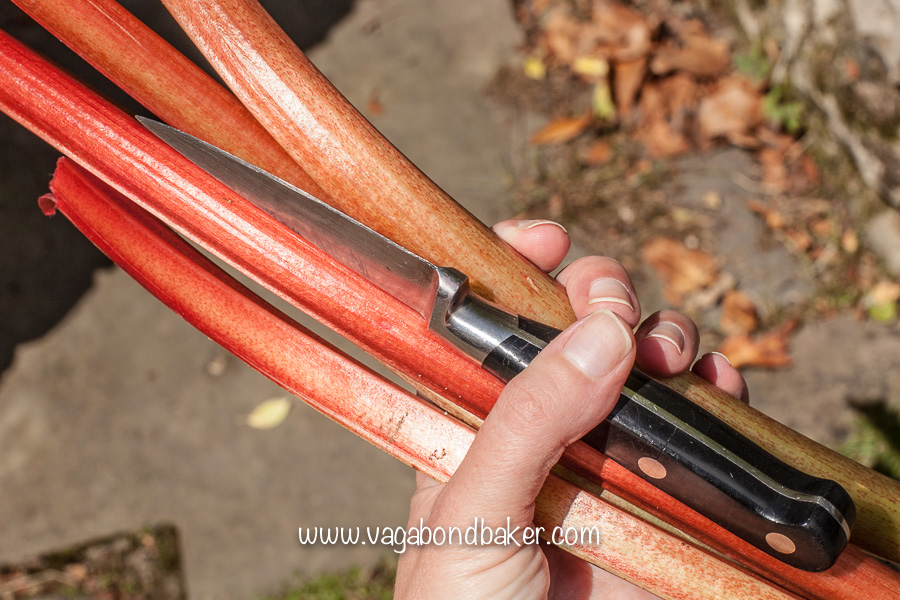 - Arrange the rhubarb pieces into rows, neatly side by side.