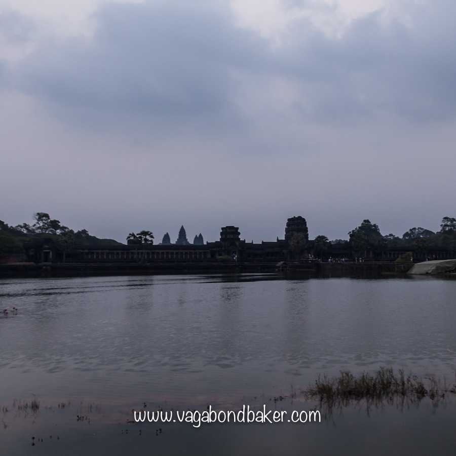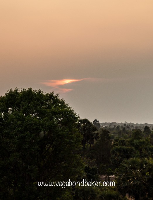 - Angkor Wat. If you are cycling you want to be setting off around 5 am, don’t forget to take water with you. It will be a cool ride in the darkness, head torches are ideal. There is plenty of traffic on the road, all heading in the same direction. Lock your bikes up somewhere out front of the entrance, you’ll be told where. Pick your spot, we stayed on the road to watch the sun rise from afar but you could head inside if you wished. Our sunrise was overcast unfortunately!