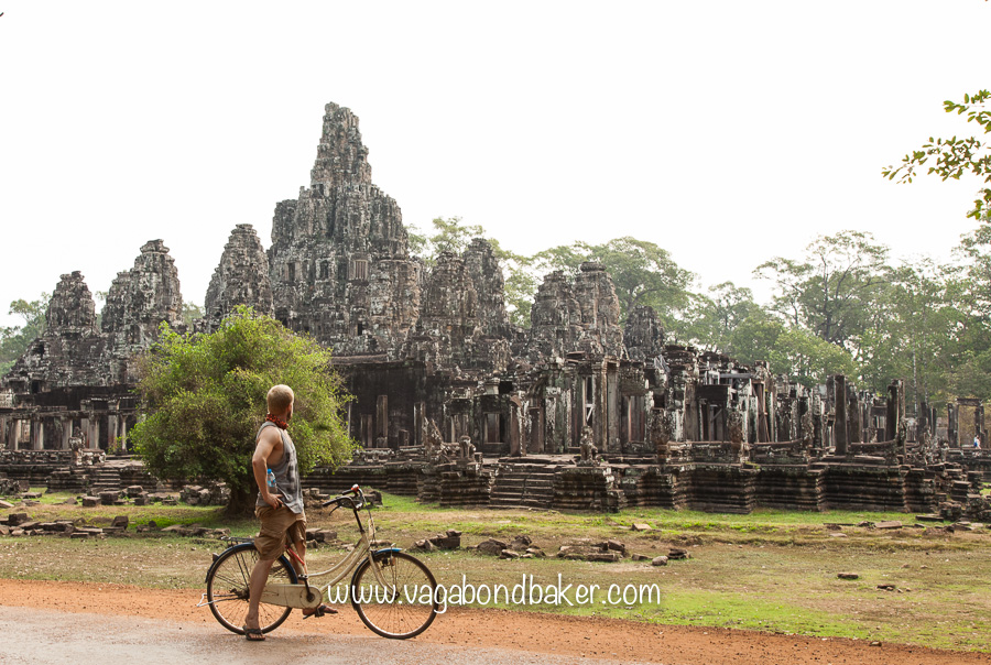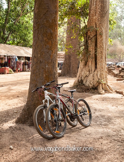 Angkor Wat is about a 40 minute ride from Siem Reap and the road is very flat, if you don’t fancy the ride back it’s worth noting that you can get two people and two bicycles in a tuk-tuk.