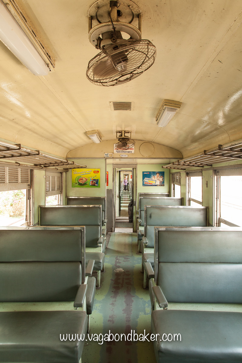 The Aranyaprathet to Bangkok train costs less than $2, there is only one class and that is 3rd. The carriages are spacious and pretty comfortable, the warm air is circulated by ceiling fans, cooler air breezes in through the open windows once the train starts moving.