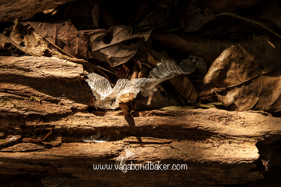 The trees were tall and majestic, we saw no large wildlife but there was plenty of small stuff from pretty butterflies to cicada exoskeletons and a shedded snake-skin.