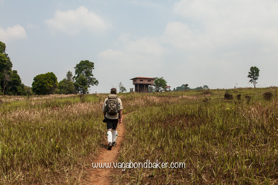 The trail opened out from the forest onto rolling grassland and blazing sunshine to the Nong Phak Chi Watchtower before rejoining the road back to the visitor centre.