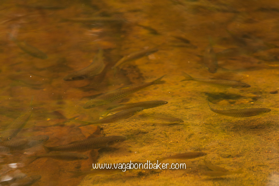 We walked up to the top of the waterfall where the shallow river was teeming with small fish.
