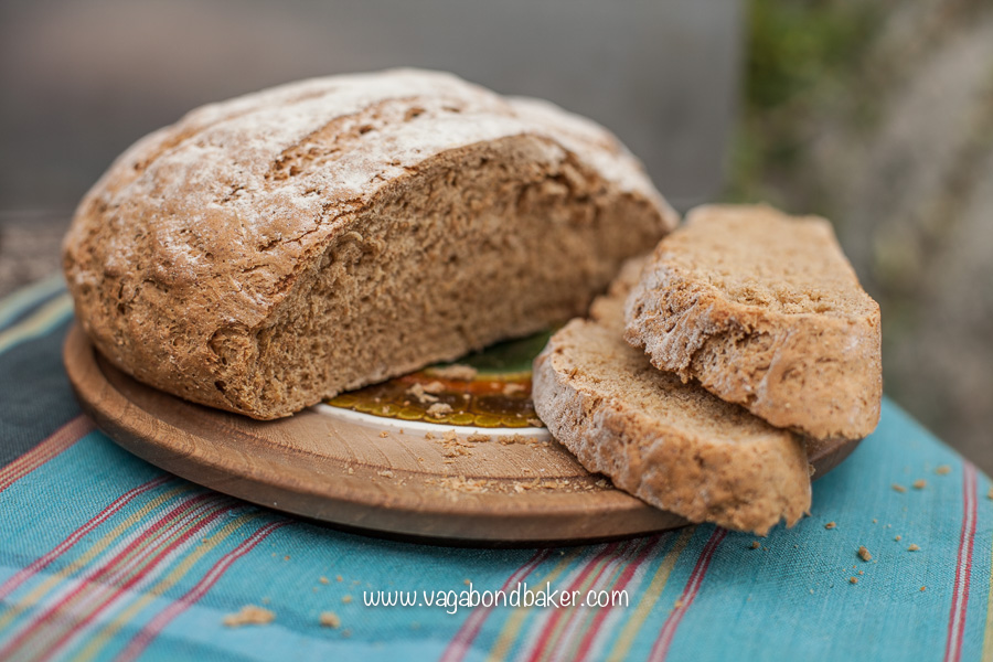 These loaves were baked in an Aga; Agas are famous for baking the best bread: apparently the roasting oven is just like a baker’s oven. I popped a little foil dish of water into the oven at the same time as the steam helps to give the bread a great crust.