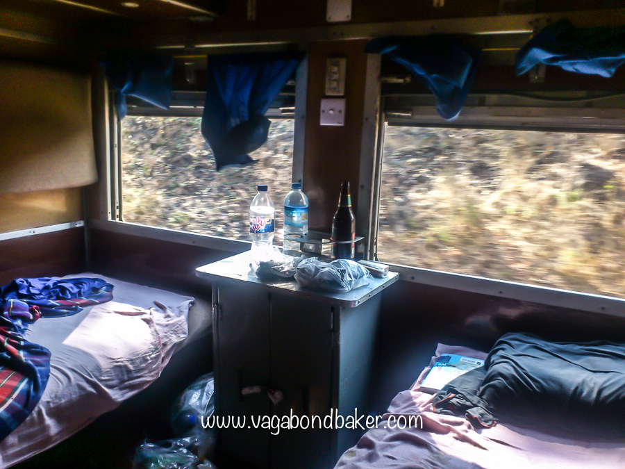 Our compartment was huge! So spacious, with four berths, a cupboard, two windows and a fan overhead. The beds were pretty wide too. We got settled in, Mike was in the compartment next door with some Burmese passengers.