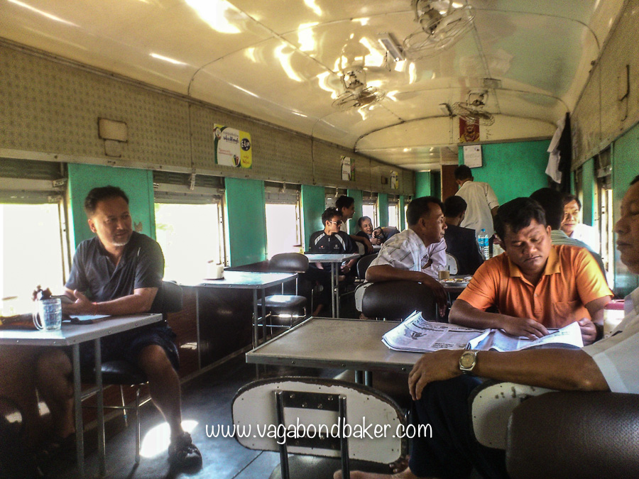 We took the Yangoon-Mandalay train a few years ago. I’m sure we bought the ticket from the same place as you did. Our compartment was not like yours but completely separated from the rest of the train. No restaurant car for us. The train was rocking so wildly I couldn’t take a swig without spilling most of the beer on my face. It was kind of fun actually and we laughed a lot. On the way back we first took a ferry to Bagan and a bus from there. Great times!