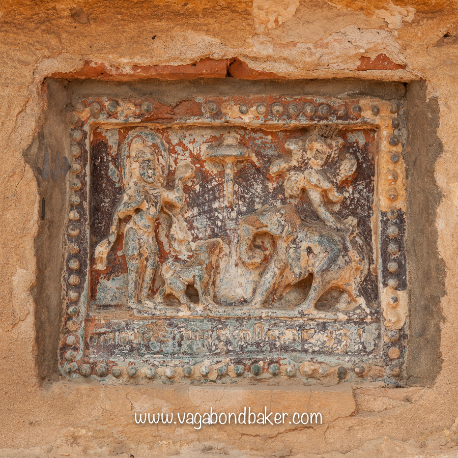 Mike had described the temple, we spotted it on the horizon near Sulamani Pahto only for it to disappear out of view. We rode in the general direction along a narrow, bumpy, rocky path between spiky hedges– surely this isn’t the way?– bursting out the other end into a ploughed field.
