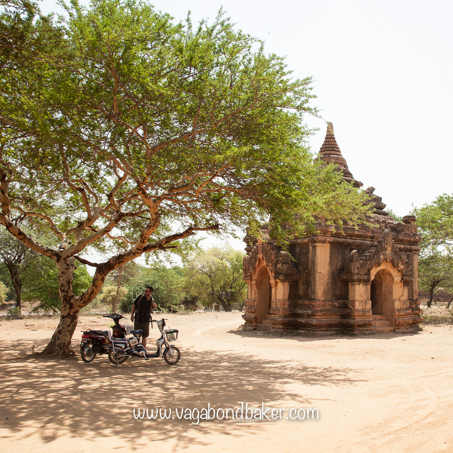 Moving on, we took the road south towards New Bagan, passing through the village of Myinkaba. We passed a few ancient temples then pulled off the road at a cluster of stupas and a temple, partly because my seat felt loose (it wasn’t).