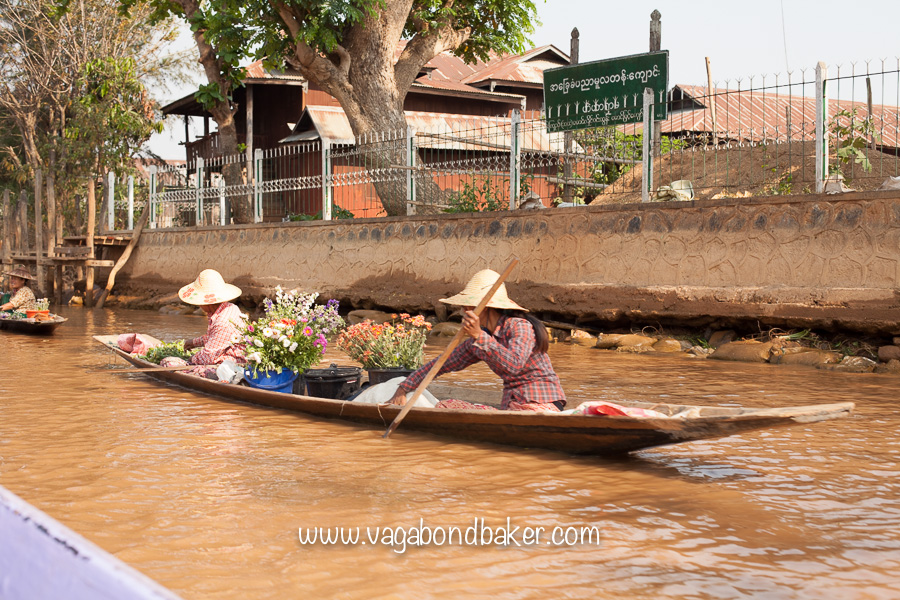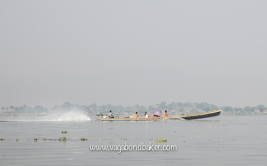 There were many tourist boats; foreign tourists neatly perched on wooden seats, just as we were. The Burmese tourists were also out on the lake but they were packed many and low into their boats, sitting on mats, their heads and shoulders peeking over the waterline.
