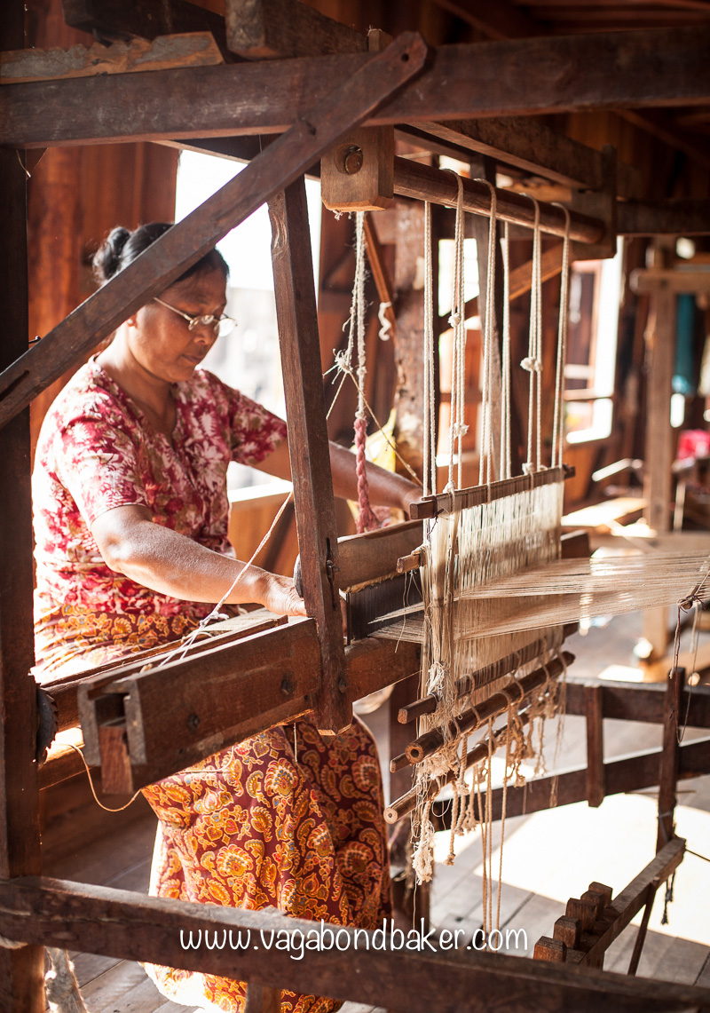 Our boatman took us down to the southern end of the lake, to the village of Kyaing Kan where we visited a lotus thread workshop.