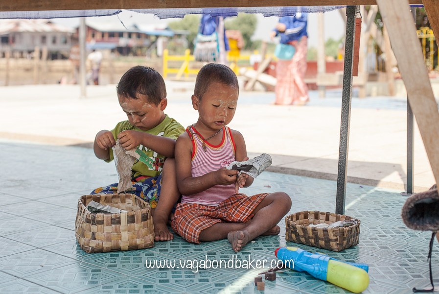 He pulled up alongside a stilt house and his wife appeared with a sticky-nosed young child. We all waved hello, “mingalaba!” and she brought out a fifth chair for Kayla and we shuffled our chairs up to fit it in.