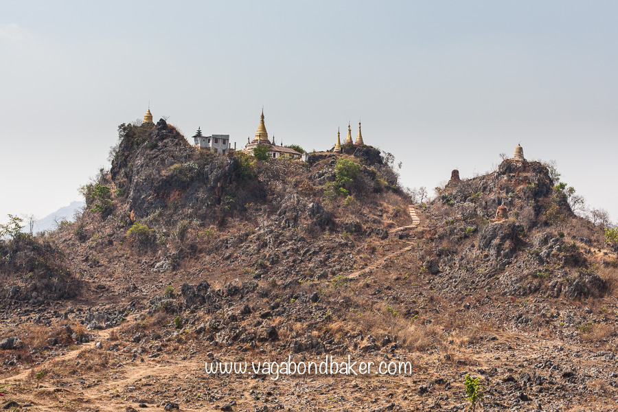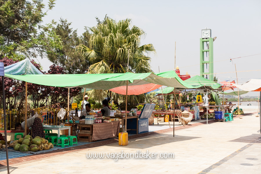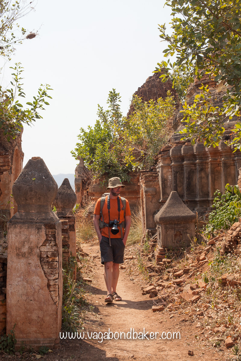 We were dropped off at a small jetty just before the village and followed the path to an almost deserted market place. Inthein is famous for its many stupas: new and ancient. Unsure of where to go, a lady pointed us in a general direction. Spotting a cluster of old stupas on a hill to the right, we headed towards them.