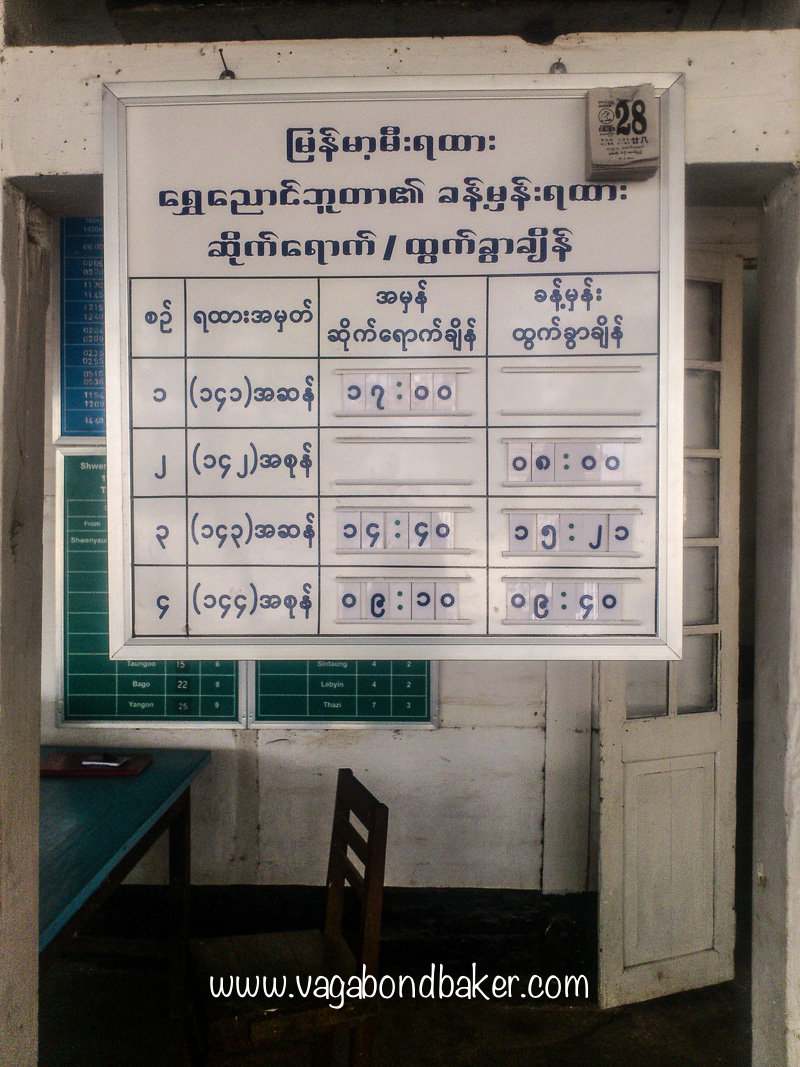 It was time to catch the train again! We had three days before our flight back to Bangkok; having opted to fly out of Mandalay, we now had to get there.