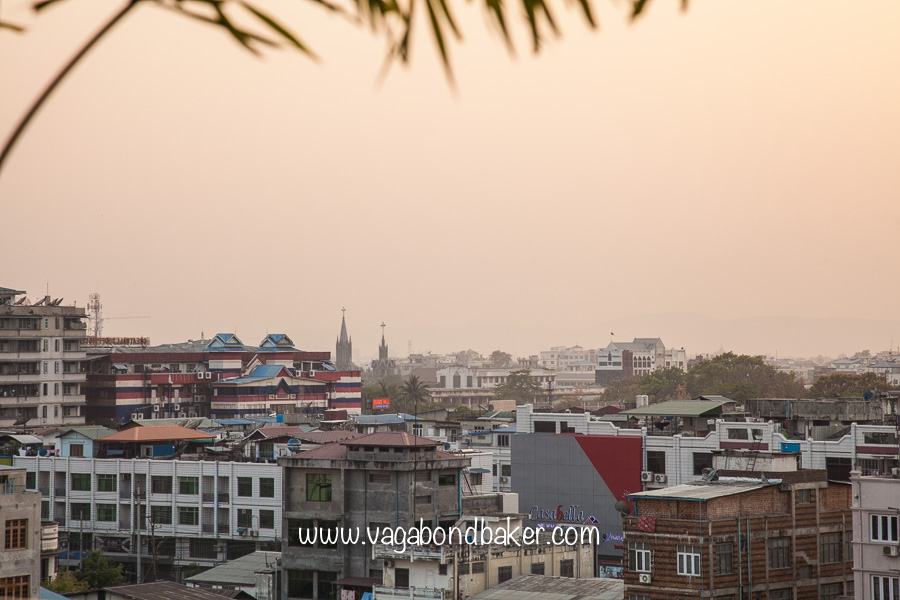 Yes, we were that lazy. Our final sunset in Burma was viewed from a midrange hotel rooftop in Mandalay with a free cocktail (or four). We could see Mandalay Hill, it looked rather pretty from where we were standing!