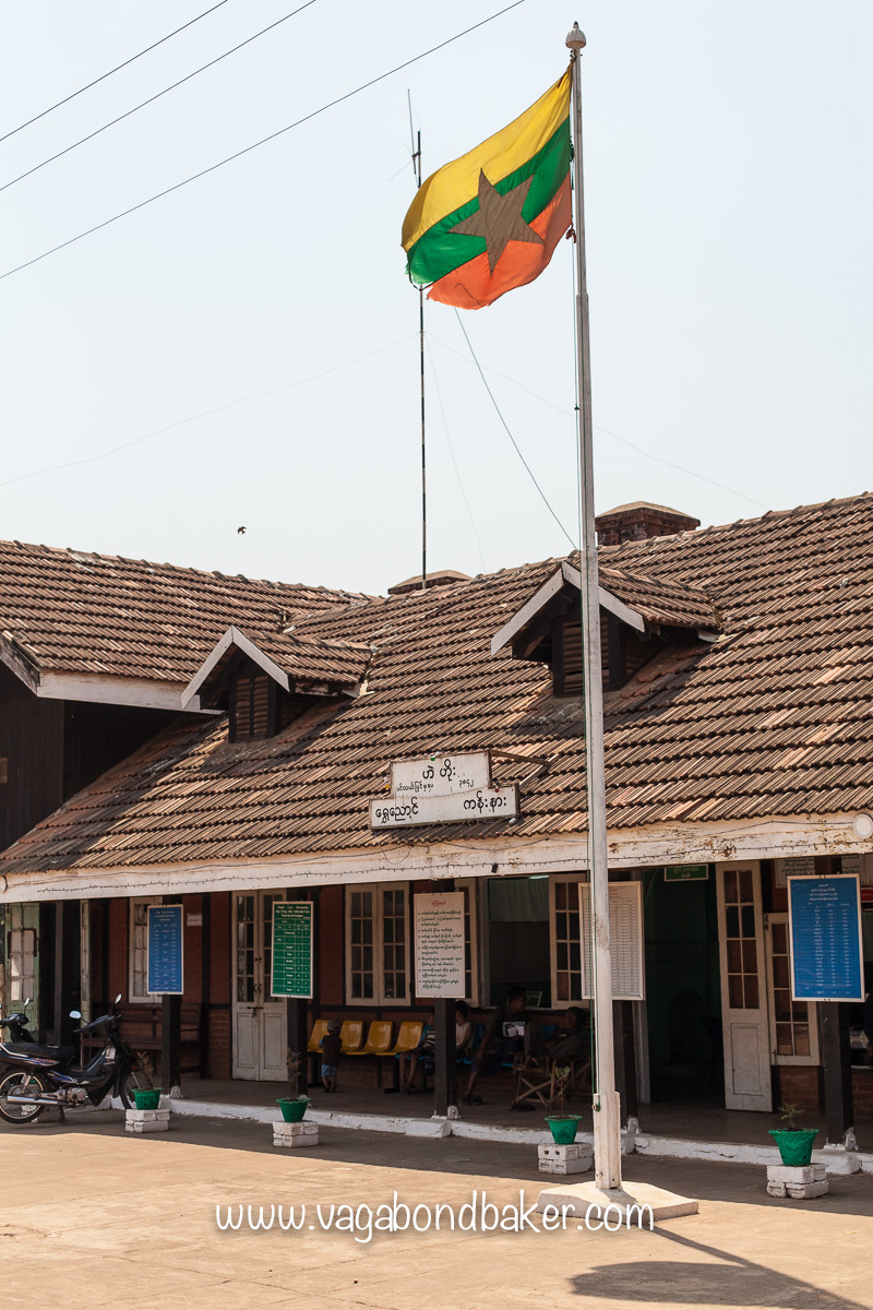 With plenty of advise from the Man at Seat 61 we set off by taxi to Shwenyaung, the nearest town to Naungshwe with a railway station. Our friendly taxi driver cheerily pointed out all the sights and temples we’d failed to see in our too-brief time in the area; arriving at Shwenyaung Station, he walked us through to the ticket office before saying goodbye.