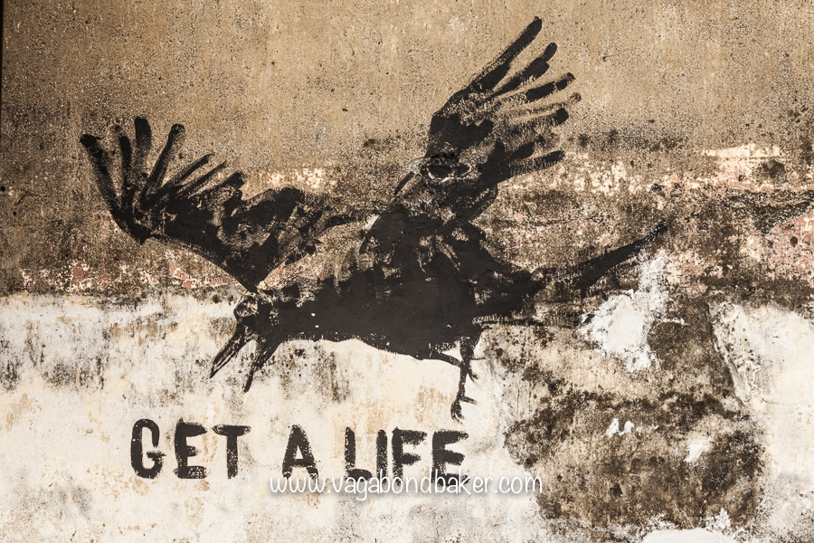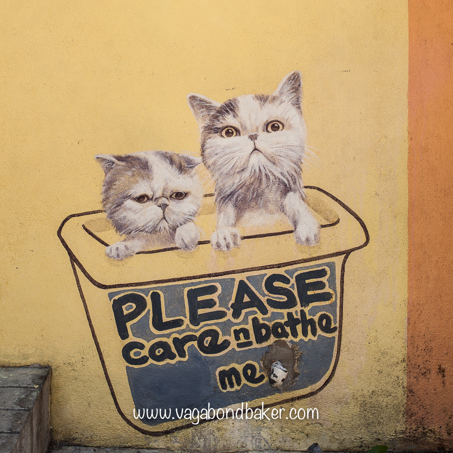 Aside from the cute kittens and playful children, the street artists of Penang have also enriched the city streets with wise words, thoughtful ponderings and joyful illustrations: the colourful dragon and the ‘Get a Life’ crow particular favourites of mine.