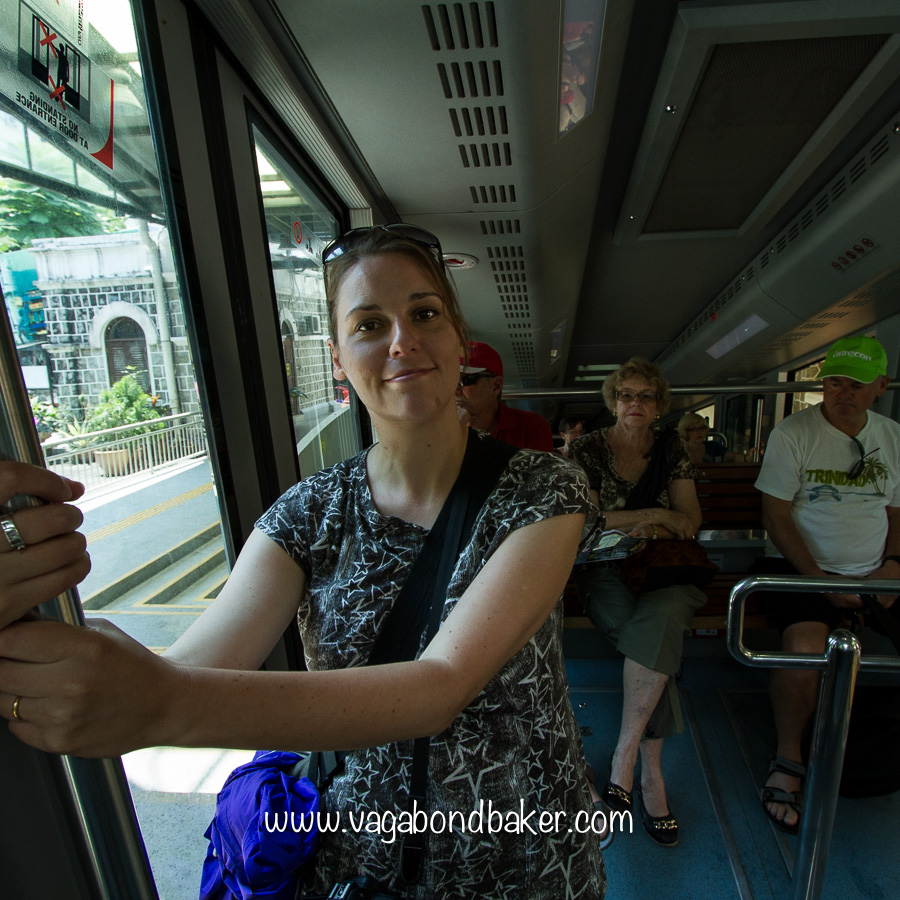 The funicular rail car fills with tourists, all taking the easy ride up Penang Hill: for the views and tourist attractions at the top. We stand at the front, the steep rails snake up in front of us, thick cables quiver to pull us upward.