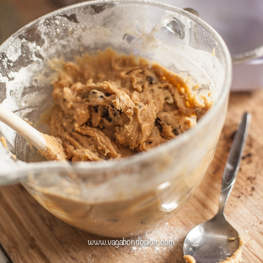 Sift the flour and salt into the bowl and stir to combine. Add the chocolate chunks and give it all a good mix to distribute. If it looks a bit dry and isn’t holding together, add a tablespoon more of milk.