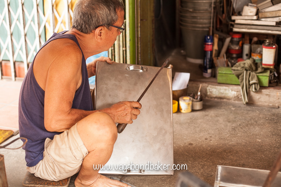 After showing us the historical side to Melaka, he then took us into Chinatown to show us the fading industries of Melaka: the last traditional picture framer, the last manual tin product manufacturer, the last lotus shoe manufacturer.