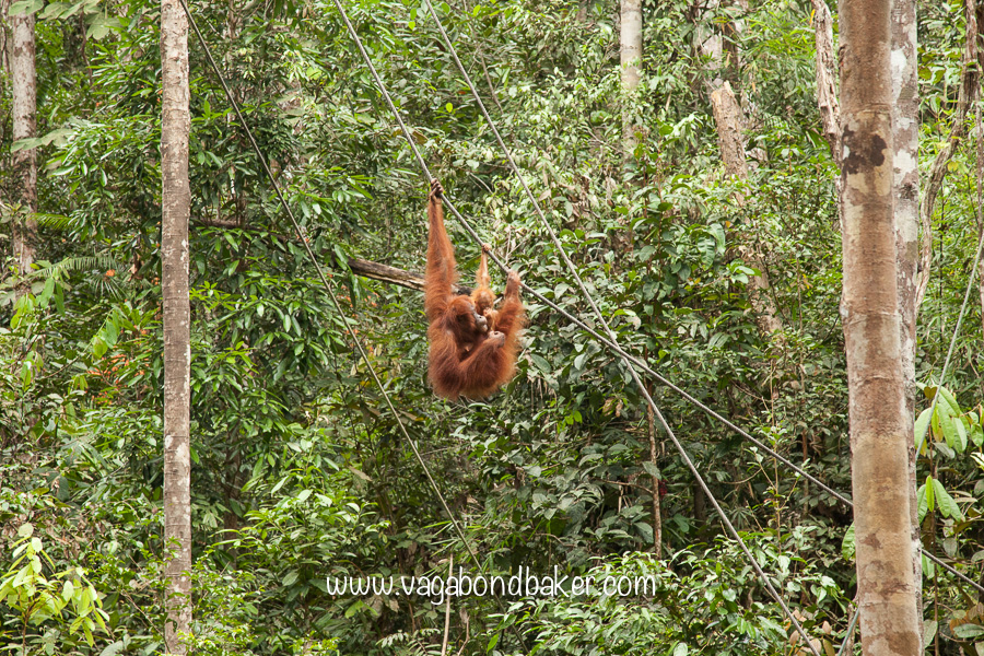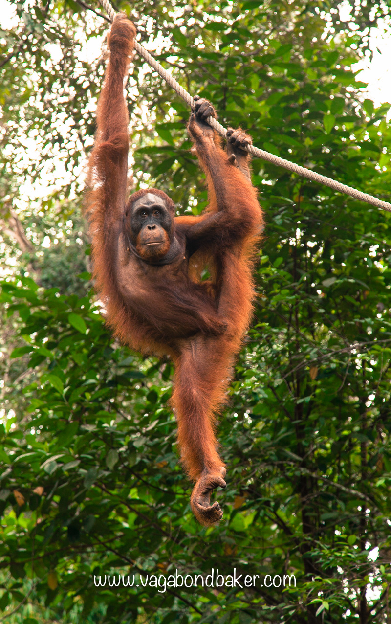 The reason she joined us was probably because there was a young boisterous male orang-utan behind her (the guy dangling with attitude off the rope in the photo above).