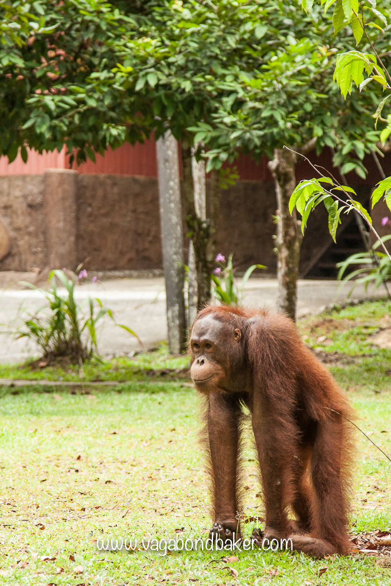 The centre is an easy bus ride from the bus station in Kuching, from the main entrance it is around a twenty-minute walk down to the feeding centre along a track lined with trees and pitcher plants. The feeding times are at 9am and 3pm.