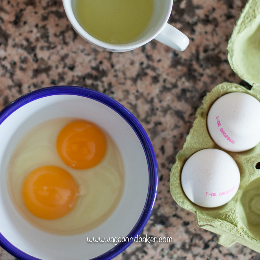 - When the milk/butter has cooled, mix in the egg and egg yolk.