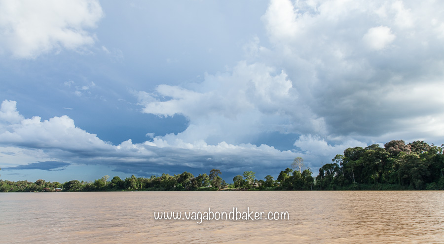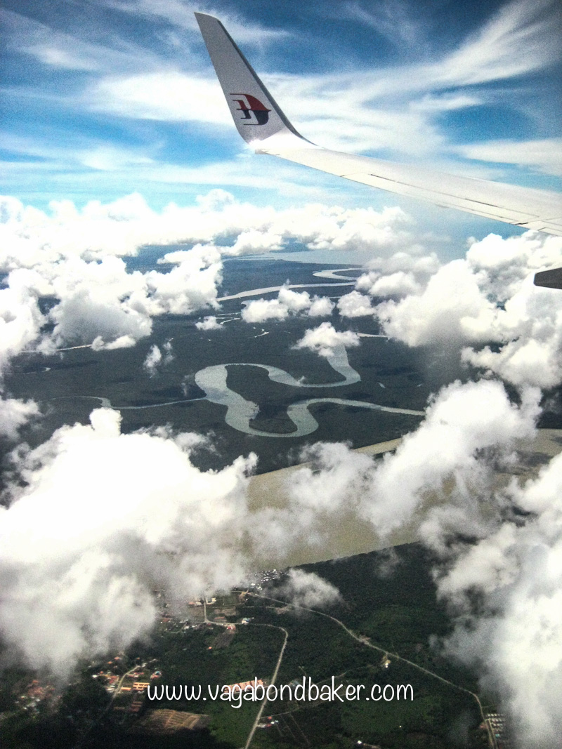 To get to Kinabatangan we flew from Kuching, Sarawak to Sandakan, Sabah via Kota Kinabalu, the flight took us over what I assume to be the forested floodplain, a snaking river appeared through the clouds.
