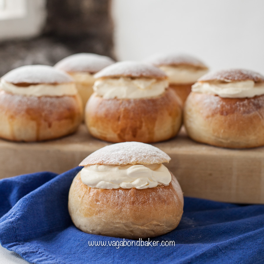 These fresh cream buns have a hidden filling of almond paste and are delicately flavoured with cardamom while the fresh cream topping is luscious and inviting. You have to give these Semlor buns a go!