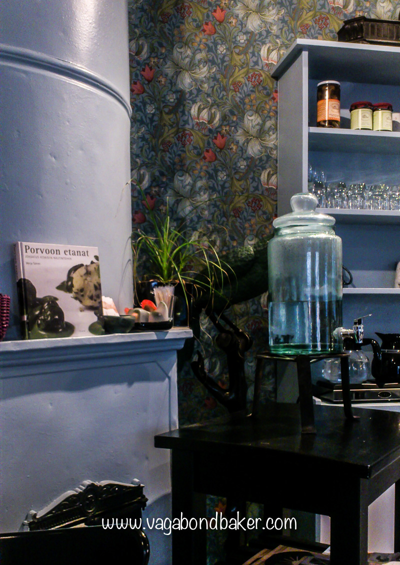 Cafe Klockan looked inviting and when I peeped in and saw it had William Morris wallpaper, well that sealed the deal!