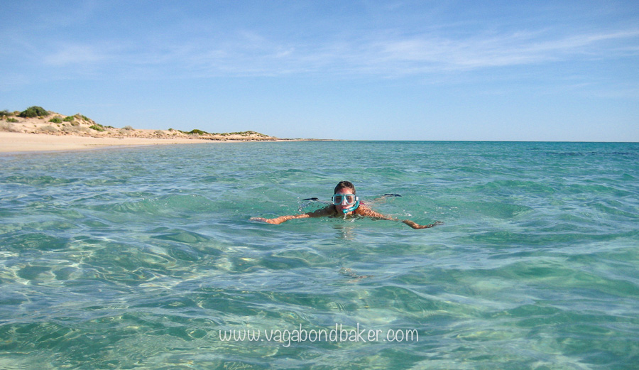 Chris phoned the nearest campsite outside the park to book a pitch then we took our recently purchased snorkelling gear (bought in Exmouth) to Turquoise Bay and went for swim.