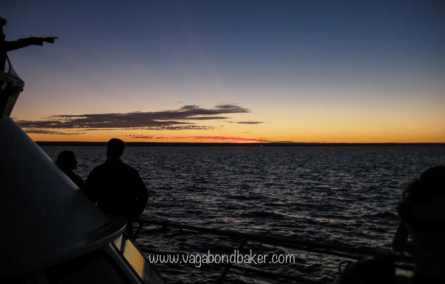 The boat took us out that evening, there was beer and nibbles, and there were whales. Three humpback whales, one was a calf, entertained us with ‘pec slaps’ and ‘tail splashing’ while we watched the sun go down on our final day on the peninsula. As night fell the whales seem to become more playful, the calf was happily tail splashing next to its mum!