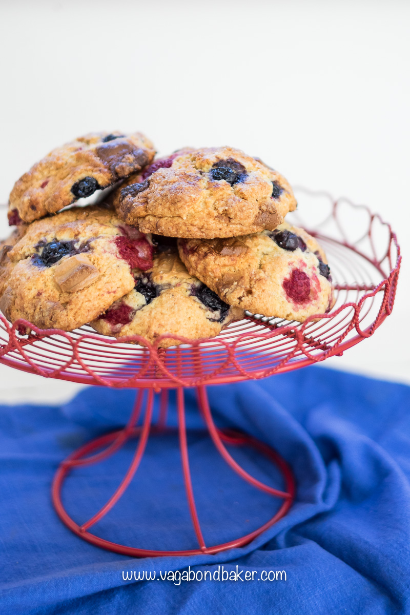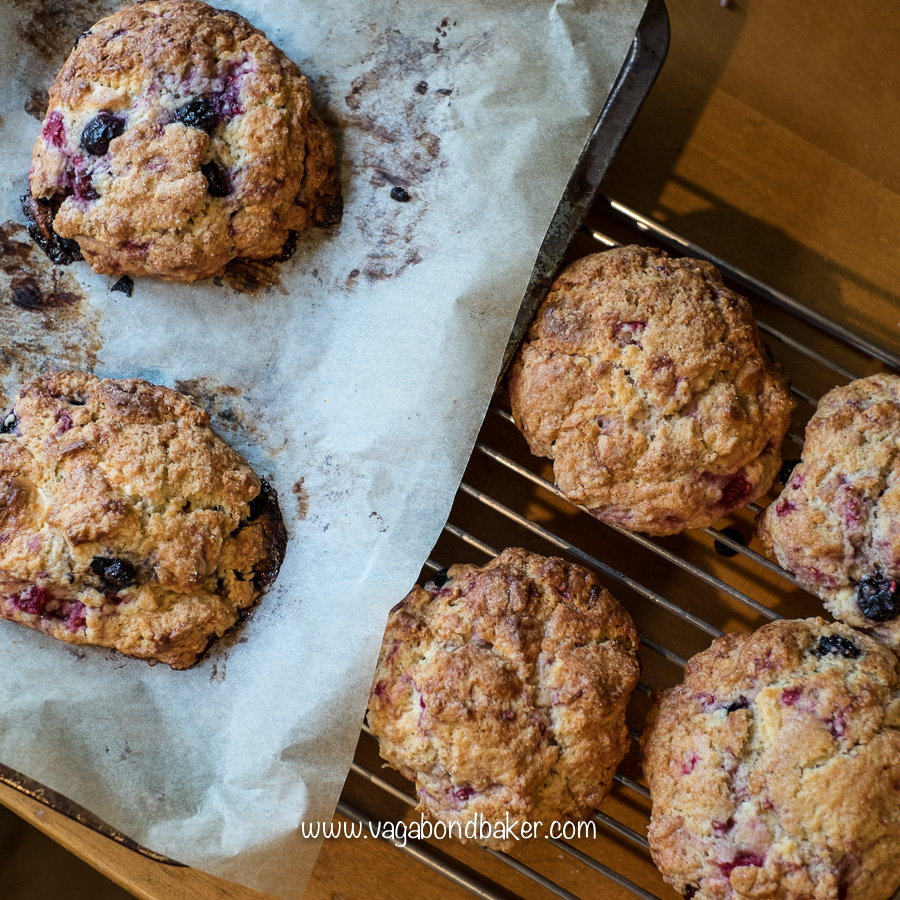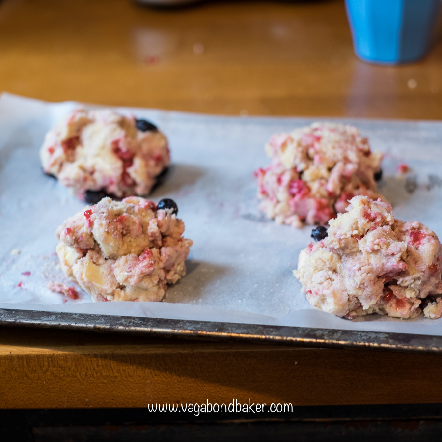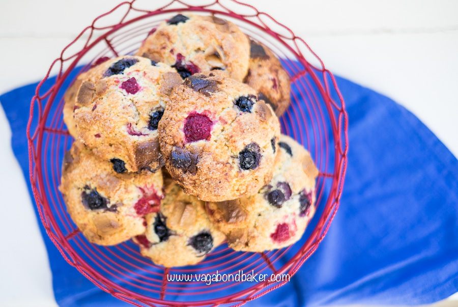 I was inspired for this recipe from a scone I bought from a bakery in St Andrews, Scotland: a Duke of Cambridge scone, a scone dedicated to Prince William with the same combination of white choc, blueberries and raspberries.