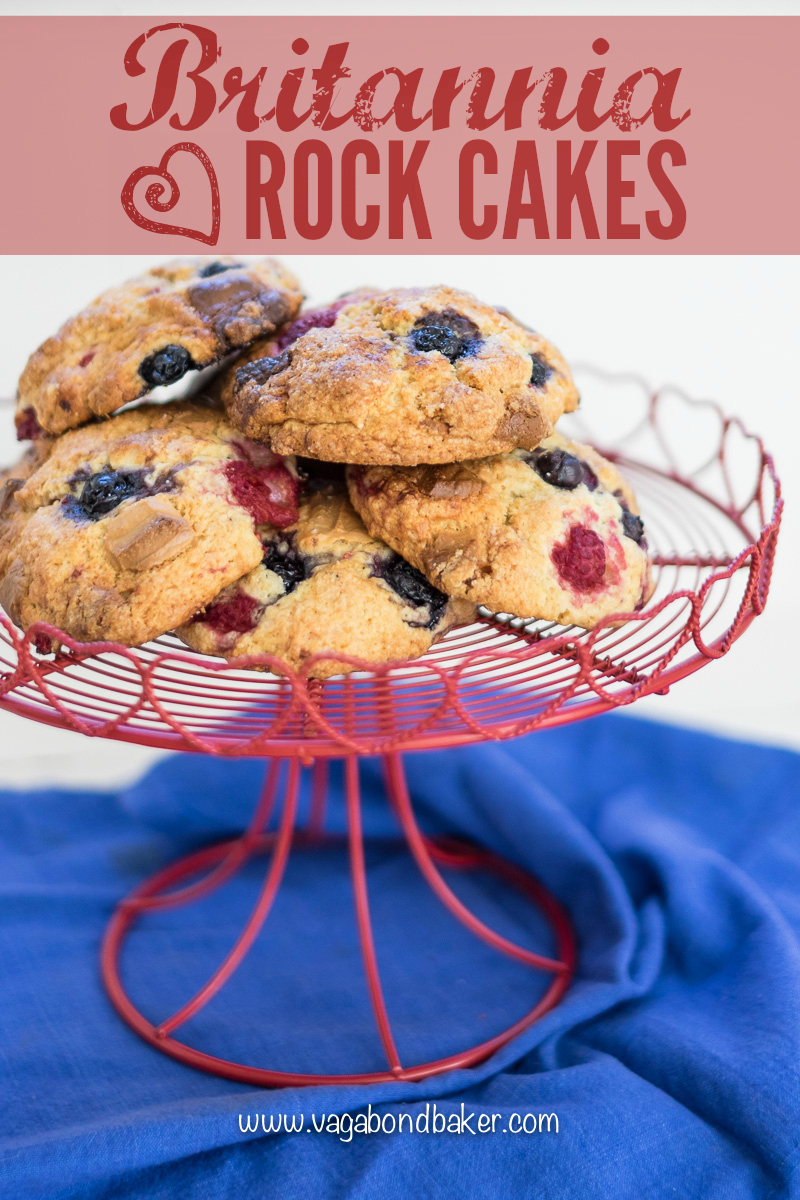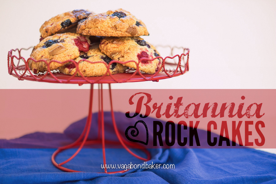 Rock cakes, they totally rock! I just had to give these white chocolate, blueberry and raspberry rock cakes a name that was rock n roll enough for them, something as British as the colours of our awesome flag that they’re based on: so I’ve dedicated them to our Lady Britannia (she of trident, helmet and shield)!
